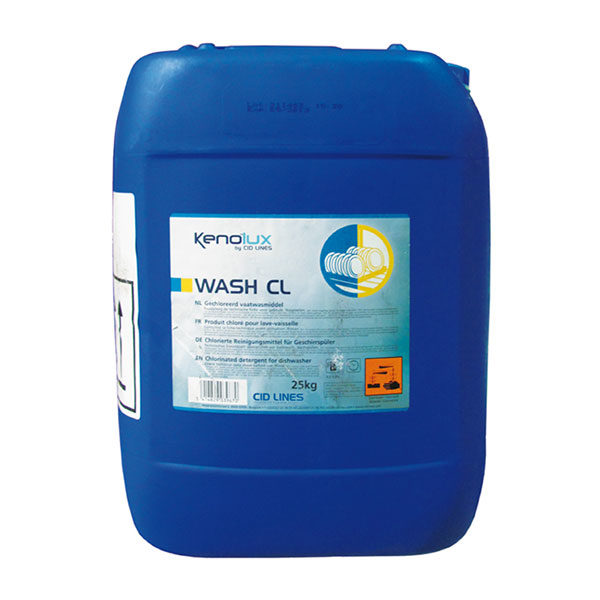 Concentrated washing liquid for dishwashers and simultaneous disinfection. Contains chlorine.